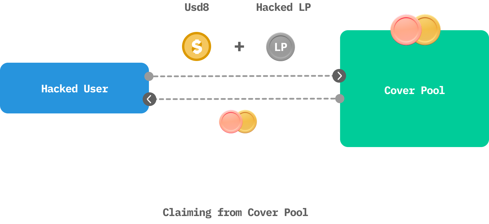 Once coverage is offered, the Cover Pool will accept the specified LP token for claims at any time, permissionlessly. Claimants receive a proportional mix of assets matching the Cover Pool’s composition.