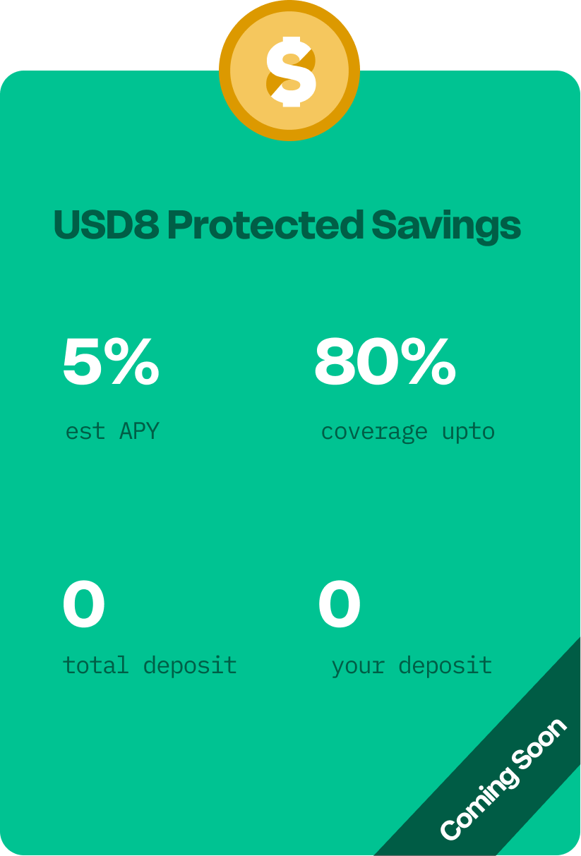 USD8 Protected Savings is a yield vault designed for passive DeFi users who want simple, deposit-and-forget yield with built-in hack protection.